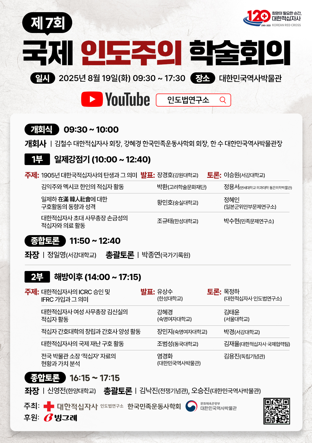 [한국민족운동사학회·대한적십자사·대한민국역사박물관] 제7회 국제 인도주의 학술회의(8/19)